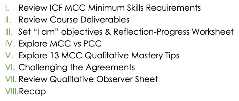 A step-by-step roadmap that outlines the milestones and essential elements of achieving MCC-level coaching mastery.